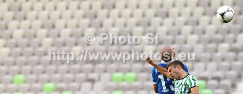 : Zdenek Ondrasek of Tromso IL (L) and Boban Jovic of NK Olimpija (R) during football match of second qualifying round of UEFA Europa League between NK Olimpija, Slovenia and Tromso IL, Norway. Match of second qualifying round of UEFA Europa League between NK Olimpija and Tromso IL was played in Stozice arena in Ljubljana, Slovenia, on Thursday, 19th of July 2012.