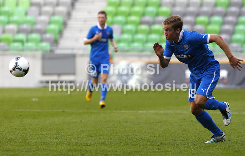 : Thomas Bendiksen of Tromso IL during football match of second qualifying round of UEFA Europa League between NK Olimpija, Slovenia and Tromso IL, Norway. Match of second qualifying round of UEFA Europa League between NK Olimpija and Tromso IL was played in Stozice arena in Ljubljana, Slovenia, on Thursday, 19th of July 2012.