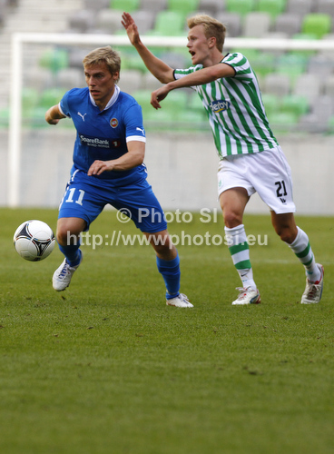 Ljubljana ,Slovenia - 19.07.2012 : Ruben Yttergard Jenssen of Tromso IL (L) and Nik Omladic of NK Olimpija (R) during football match of second qualifying round of UEFA Europa League between NK Olimpija, Slovenia and Tromso IL, Norway. Match of second qualifying round of UEFA Europa League between NK Olimpija and Tromso IL was played in Stozice arena in Ljubljana, Slovenia, on Thursday, 19th of July 2012. Photo by: Primoz Jeroncic