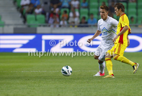 Ljubljana ,Slovenia - 15.08.2012 : Valter Birsa (no.10) of Slovenia (L) and Costin Lazar (no.8) of Romania (R) during friendly football match between Slovenia and Romania. Match between Slovenia and Romania was played in Stozice arena in Ljubljana, Slovenia, on Wednesday, 15th of August 2012. Photo by: Primoz Jeroncic