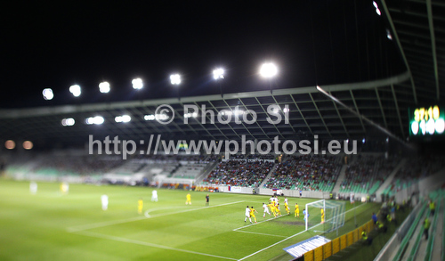 : Players of Slovenia and Romania in front of Romania goal during friendly football match between Slovenia and Romania. Match between Slovenia and Romania was played in Stozice arena in Ljubljana, Slovenia, on Wednesday, 15th of August 2012.