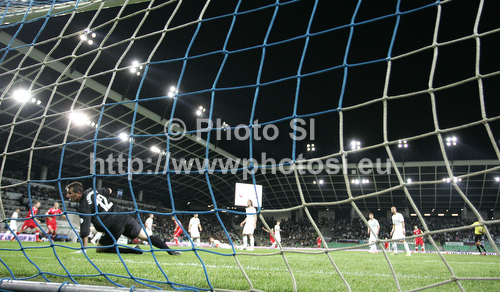 : Goalie Jasmin Handanovic of Slovenia in action during FIFA World cup 2014 qualification football match between Slovenia and Switzerland. Match between Slovenia and Switzerland was played in Stozice arena in Ljubljana, Slovenia, on Friday, 7th of September 2012.