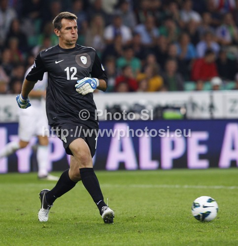 : Goalie Jasmin Handanovic of Slovenia during FIFA World cup 2014 qualification football match between Slovenia and Switzerland. Match between Slovenia and Switzerland was played in Stozice arena in Ljubljana, Slovenia, on Friday, 7th of September 2012.