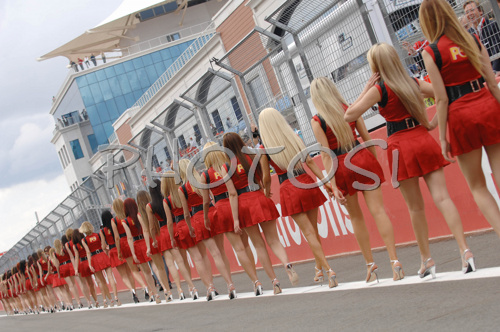 : Grid girls during Formula 1 Grand Prix of Turkey. Formula 1 Grand prix of Turkey was held on Istanbul raceway on Sunday, 11th of May 2008 in Istanbul, Turkey.