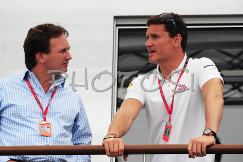 : Christian Horner (GBR), Red Bull Racing, Sporting Director and David Coulthard (GBR), Red Bull Racing before free practice for Formula 1 Grand Prix of France. Free practice for Formula 1 Grand Prix of France in Magny Cours was held on Thursday, 18th of June 2008 in Magny Cours, France.