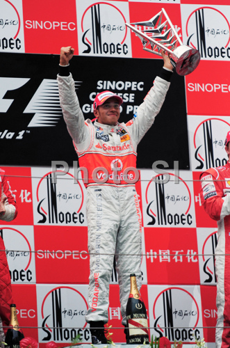 : Lewis Hamilton (GBR), McLaren Mercedes celebrates on the podium after Formula 1 Grand Prix of China in Shanghai. Formula 1 Grand Prix of China was held on Sunday, 19th of September 2008 in Shanghai, China.