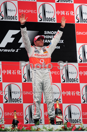 : Lewis Hamilton (GBR), McLaren Mercedes celebrates on the podium after Formula 1 Grand Prix of China in Shanghai. Formula 1 Grand Prix of China was held on Sunday, 19th of September 2008 in Shanghai, China.