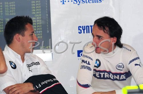 : Christian Klien (AUT), Test Driver, BMW Sauber and Robert Kubica (POL), BMW Sauber F1 Team during free practice for Formula 1 Grand Prix of France. Free practice for Formula 1 Grand Prix of France in Magny Cours was held on Thursday, 18th of June 2008 in Magny Cours, France.