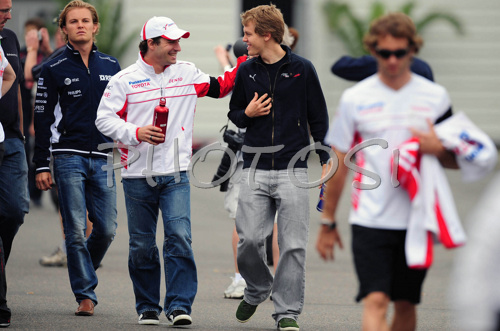 : Nico Rosberg (GER), WilliamsF1 Team, Timo Glock (GER), Toyota Racing and Sebastian Vettel (GER), Scuderia Toro Rosso before Formula 1 Grand Prix of France. Formula 1 Grand Prix of France in Magny Cours was held on Sunday, 22th of June 2008 in Magny Cours, France.
