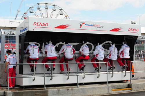 : Toyota Racing Team during qualifications of Formula 1 Grand Prix of Great Britain. Formula 1 Grand Prix of Great Britain in Silverstone was held on Friday, 5th of July 2008 in Silverstone, Great Britain.