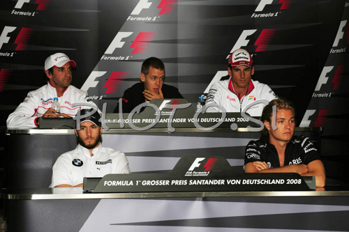 : Nick Heidfeld (GER), BMW Sauber F1 Team - Nico Rosberg (GER), WilliamsF1 Team - Timo Glock (GER), Toyota Racing - Sebastian Vettel (GER), Scuderia Toro Rosso - Adrian Sutil (GER), Force India Formula One Team in press conference during Formula 1 Grand Prix of Germany. Formula 1 Grand Prix of Germany in Hockenheim was held on 20h of July 2008 in Hockenheim, Germany.