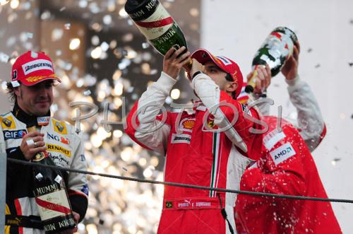 : Fernando Alonso (ESP), Renault F1 Team, Felipe Massa (BRA), Scuderia Ferrari and Kimi Raikkonen (FIN), Scuderia Ferrari on podium after after Formula 1 Grand Prix of Brazil in Interlagos, Brazil. Last race of Formula 1 Grand Prix 2008, Grand Prix of Brazil was held on Sunday, 2nd of November 2008 in Interlagos, Brazil.