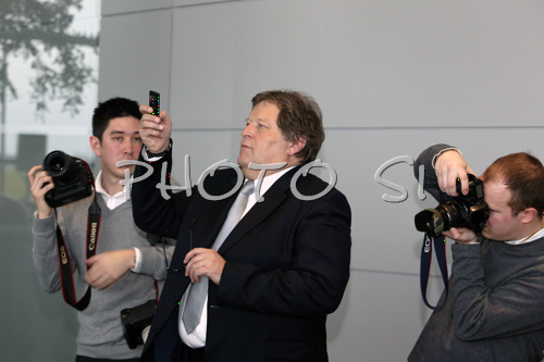 - 17.01.2009: Norbert Haug (GER), Mercedes, Motorsport chief takes a picture with a mobile phone during presentation of new Mclaren Mercedes Formula 1 race car. Presentation of Mclaren Mercedes Formula 1 team was held in Woking, Great Britain, on 17th of January 2009.