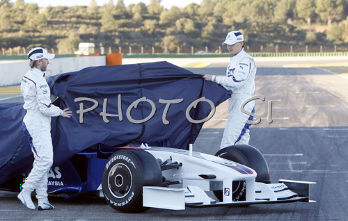 : Robert Kubica (POL) and Nick Heidfeld (GER) unveil the new BMW Sauber F1.09 during presentation of new BMW Sauber F1.09 Formula 1 race car. Presentation of BMW Sauber Formula 1 team was held in Valencia, Spain, on 20th of January 2009.