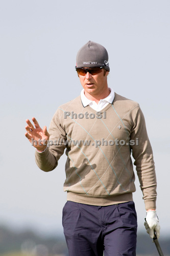 : Mikko Ilonen of Finland acknowledges the crowd after a birdie putt on the 9th hole while competing at The Old Course during the final round of the Alfred Dunhill Links Champions, part of the PGA European Tour, Race to Dubai Championship.