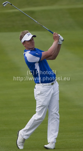 : Luke Donald (GBR) playing a shot on day one of the Celtic Manor Wales Open 2010, in the Celtic Manor Resort and Golf Club, part of the Race to Dubai tournament.