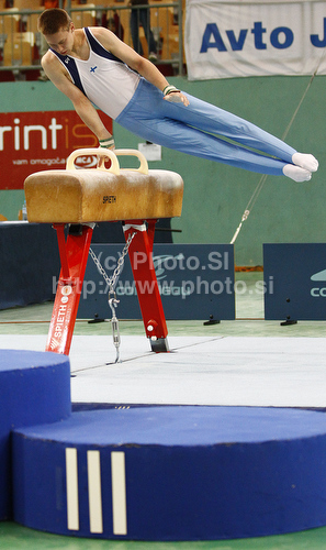 : Juho Kanerva of Finland performing during 6th Artistic gymnastics World Cup in Maribor, Slovenia. First day of traditional 43rd Salamun memorial which also counts as Artistic gymnastics World cup was held in Maribor, Slovenia on Saturday, 8th of May 2010.