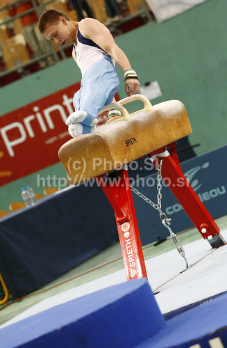 : Juho Kanerva of Finland performing during 6th Artistic gymnastics World Cup in Maribor, Slovenia. First day of traditional 43rd Salamun memorial which also counts as Artistic gymnastics World cup was held in Maribor, Slovenia on Saturday, 8th of May 2010.