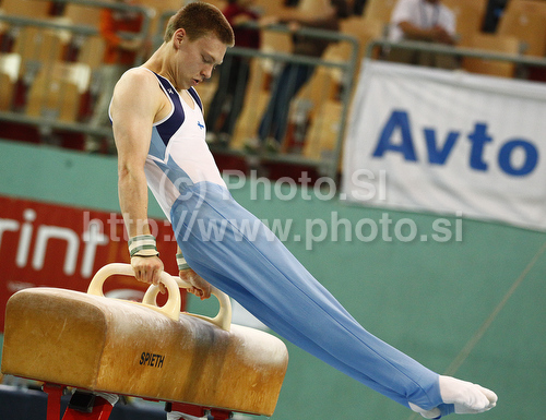 : Juho Kanerva of Finland performing during 6th Artistic gymnastics World Cup in Maribor, Slovenia. First day of traditional 43rd Salamun memorial which also counts as Artistic gymnastics World cup was held in Maribor, Slovenia on Saturday, 8th of May 2010.