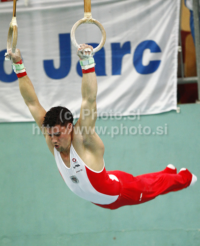 : Fabian Leihlehner of Austria performing during 6th Artistic gymnastics World Cup in Maribor, Slovenia. First day of traditional 43rd Salamun memorial which also counts as Artistic gymnastics World cup was held in Maribor, Slovenia on Saturday, 8th of May 2010.