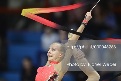 : Jouki Tikkanen of Finland competes in RSG Schmiden International 2013, rhythmic gymnastics competions which was held on 10th of March 2013 in Fellbach Schmieden, Germany.