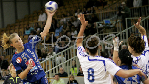 : Barbara Varlec (no.51) of Krim shooting on goal during match of 1/8 finals match of Women Handball Cup Winners cup. Match between RK Krim, Ljubljana, Slovenia, and RK Lokomotiva Zagreb, Croatia was played on 9th of February 2008 in Tivoli Arena in Ljubljana, Slovenia. Match ended with victory of RK Krim, who defeated RK Lokomotiva Zagreb 31:25.