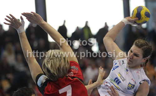 : during match of EHF Women Handball Champions League between RK Krim Mercator and HC Leipzig. Match of EHF Women Champions League between RK Krim Mercator, Ljubljana, Slovenia and HC Leipzig, Germany, was played in Kodeljevo Arena, Ljubljana, Slovenia, on Saturday, 13th of February 2010. Match was won by RK Krim Mercator, who defeated HC Leipzig with 32-26.