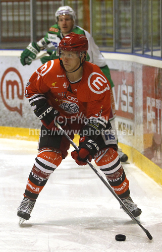 : Antti Pusa (no.41) of HK Acroni Jesenice during ice hockey match of Slovenian league finals 2011-2012 between HK Acroni Jesenice and HDD Tilia Olimpija. Match between HK Acroni Jesenice and HDD Tilia Olimpija was held on Monday, 2nd of April 2012 in Jesenice, Slovenia.