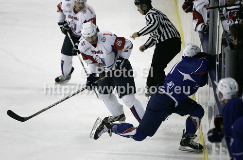 : Players during the match of EICH Ice hockey tournament between Slovenia and France. Match between Slovenia and France was held in Tivoli Arena in Ljubljana, Slovenia, on Friday, 9th of November 2012. during match of EIHC ice hockey tournament between Slovenia and France. Match between Slovenia and France was played in Tivoli Arena in Ljubljana, Sloveni, on Friday, 9th of November 2012. Match was won by Slovenia, who defeated France with 3-1.