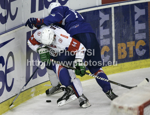 : Igor Cvetek (44) of Slovenia and French player during the match of EICH Ice hockey tournament between Slovenia and France. Match between Slovenia and France was held in Tivoli Arena in Ljubljana, Slovenia, on Friday, 9th of November 2012. during match of EIHC ice hockey tournament between Slovenia and France. Match between Slovenia and France was played in Tivoli Arena in Ljubljana, Sloveni, on Friday, 9th of November 2012. Match was won by Slovenia, who defeated France with 3-1.