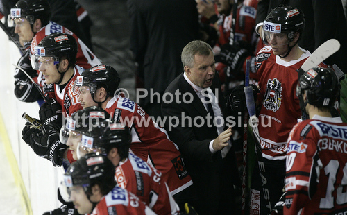 : Austrian bench during match of EIHC Ice hockey tournament between Slovenia and Austria. Match between Slovenia and Austria was held in Ljubljana Hala Tivoli arena, Slovenia, on Saturday, 10th of November 2012.