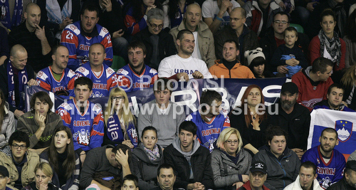 : Spectators during match of EIHC Ice hockey tournament between Slovenia and Austria. Match between Slovenia and Austria was held in Ljubljana Hala Tivoli arena, Slovenia, on Saturday, 10th of November 2012.