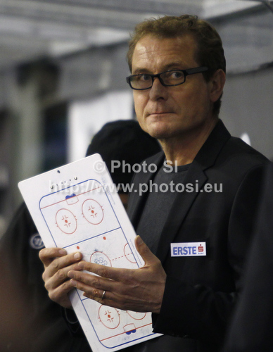 : Coach of EC VSV Hannu Jarvenpaa during match of EBEL league Ice hockey tournament between HDD Telemach Olimpija and EC VSV, Villach. Match between HDD Telemach Olimpija and EC VSV, Villach was held in Ljubljana Hala Tivoli arena, Slovenia, on Friday, 16th of November 2012.