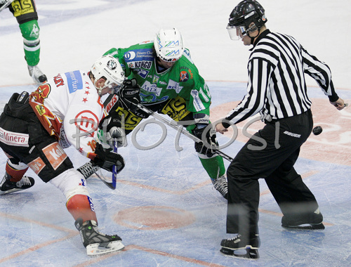 : Paul Healey (no.16) of HK Acroni Jesenice (L) and Todd Elik (no.12) of ZM Olimpija (R) during third match of Slovenian National Championships finals between ZM Olimpija, Ljubljana, Slovenia and HK Acroni Jesenice, Slovenia. Match was won by Acroni Jesenice who defeated ZM Olimpija with 1:2. Match was played in Tivoli Arena in Ljubljana, Slovenia on 8th of April 2008.