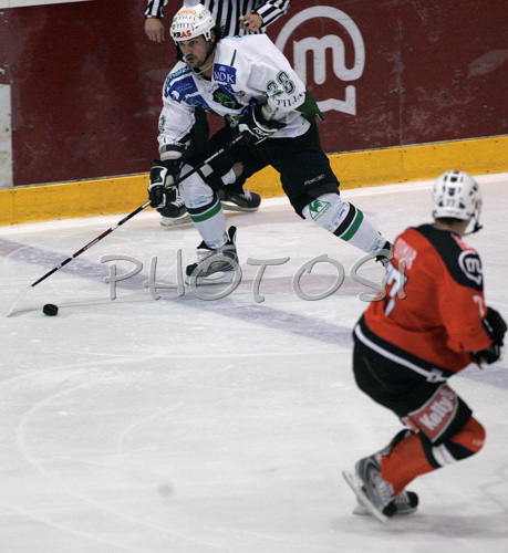 Jesenice ,Slovenia - 12.10.2008 : Frank Banham (no.38) of HDD Tilia Olimpija during match of Erste Bank Eishockey Liga 2008-09 between HK Acroni Jesenice, Jesenice, Slovenia and HDD Tilia Olimpija, Ljubjana, Slovenia. HK Acroni Jesenice won match and defeated HDD Tilia Olimpija 8:2. Match of EBEL League was played in Podmezaklja arena in Jesenice, Slovenia on 12th of October 2008. Photo by: Primoz Jeroncic