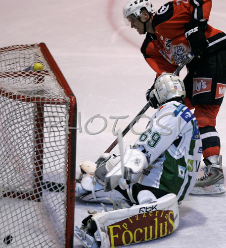 : Marcel Rodman (no.22) of HK Acroni Jesenice scoring during match of Erste Bank Eishockey Liga 2008-09 between HK Acroni Jesenice, Jesenice, Slovenia and HDD Tilia Olimpija, Ljubjana, Slovenia. HK Acroni Jesenice won match and defeated HDD Tilia Olimpija 8:2. Match of EBEL League was played in Podmezaklja arena in Jesenice, Slovenia on 12th of October 2008.