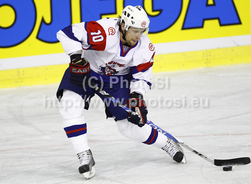 : Mitja Sivic (no.10) of Slovenia shooting during ice hockey match of IIHF Ice hockey World championships Division I, group B between Slovenia and Poland. Match between Slovenia and Poland of IIHF Ice hockey World championships Division I, group B was held on Saturday, 17th of April 2010 in Ljubljana, Slovenia. Slovenia defeated Poland with 3-2.