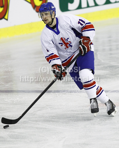 : Matt Towe (no.11) of Great Britain during ice hockey match of IIHF Ice hockey World championships Division I, group B between Great Britain and Korea. Match between Great Britain and Korea of IIHF Ice hockey World championships Division I, group B was held on Sunday, 18th of April 2010 in Ljubljana, Slovenia.