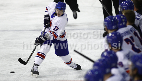 : Russell Cowley (no.17) of Great Britain during ice hockey match of IIHF Ice hockey World championships Division I, group B between Great Britain and Slovenia. Match between Great Britain and Slovenia of IIHF Ice hockey World championships Division I, group B was held on Tuesday, 20th of April 2010 in Ljubljana, Slovenia.