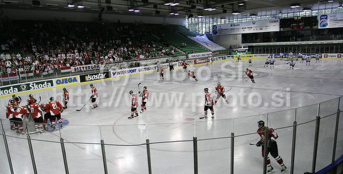 : Players of Hungary before start of ice hockey match of IIHF Ice hockey World championships Division I, group B between Great Britain and Hungary. Match between Great Britain and Hungary of IIHF Ice hockey World championships Division I, group B was held on Wednesday, 21st of April 2010 in Ljubljana, Slovenia.