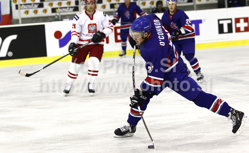 : Ben OConnor (no.27) of Great Britain during ice hockey match of IIHF Ice hockey World championships Division I, group B between Great Britain and Poland. Match between Great Britain and Poland of IIHF Ice hockey World championships Division I, group B was held on Friday, 23rd of April 2010 in Ljubljana, Slovenia.