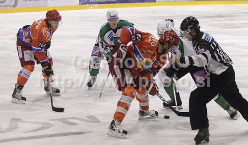 Jesenice ,Slovenia - 01.01.2011 : Players during match of EBEL Ice hockey league between HK Acroni Jesenice, Slovenia, and HDD Tilia Olimpija, Ljubljana, Slovenia. Match between HK Acroni Jesenice and Tilia Olimpija was played in Podmezakla hall in Jesenice, Slovenia, on Saturday, 1st of January 2011. Photo by: Primoz Jeroncic