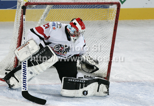 Ljubljana ,Slovenia - 16.04.2012 : Goalie Bernhard Starkbaum (no.29) of Austria during match of IIHF Ice hockey World championship Division 1 Group A between Austria and Great Britain. Match between Austria and Great Britain of IIHF Ice hockey World championship Division 1 Group A was held in Stozice Arena in Ljubljana, Slovenia, on Monday, 16th of April 2012. Photo by: Leena Jeroncic