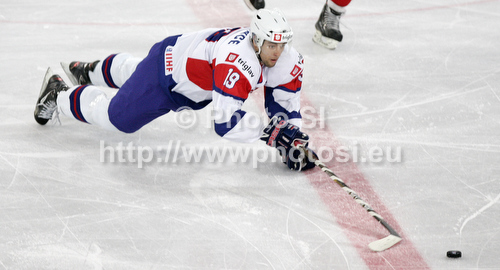 : Ziga Pance (no.19) of Slovenia during match of IIHF Ice hockey World championship Division 1 Group A between Slovenia and Hungary. Match between Slovenia and Hungary of IIHF Ice hockey World championship Division 1 Group A was held in Stozice Arena in Ljubljana, Slovenia, on Wednesday, 18th of April 2012.