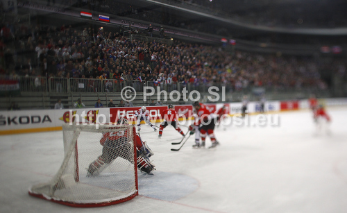 Ljubljana ,Slovenia - 18.04.2012 : Goalie Bence Balizs (no.29) of Hungary in action during match of IIHF Ice hockey World championship Division 1 Group A between Slovenia and Hungary. Match between Slovenia and Hungary of IIHF Ice hockey World championship Division 1 Group A was held in Stozice Arena in Ljubljana, Slovenia, on Wednesday, 18th of April 2012. Photo by: Primoz Jeroncic