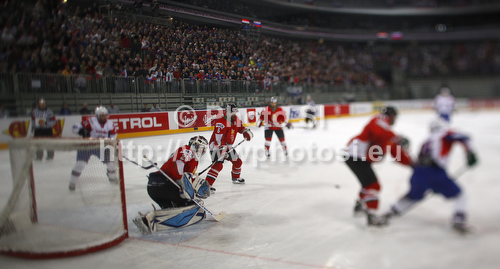 Ljubljana ,Slovenia - 18.04.2012 : Goalie Bence Balizs (no.29) of Hungary in action during match of IIHF Ice hockey World championship Division 1 Group A between Slovenia and Hungary. Match between Slovenia and Hungary of IIHF Ice hockey World championship Division 1 Group A was held in Stozice Arena in Ljubljana, Slovenia, on Wednesday, 18th of April 2012. Photo by: Primoz Jeroncic