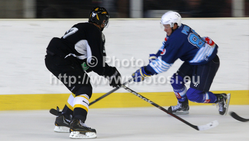 Bled ,Slovenia - 17.08.2012 : Antti Pusa of VSV Villach (R) during match of Rudi Hiti Ice hockey Summer league 2012 between Stavanger Oilers, Norway, and VSV Villach, Austria. Match between Stavanger Oilers and VSV Villach was held in Bled Ice Arena in Bled, Slovenia, on Friday, 17th of August 2012. Photo by: Primoz Jeroncic