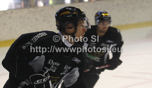 : Juha Kaunismaki of Stavanger Oilers (L) during match of Rudi Hiti Ice hockey Summer league 2012 between Stavanger Oilers, Norway, and VSV Villach, Austria. Match between Stavanger Oilers and VSV Villach was held in Bled Ice Arena in Bled, Slovenia, on Friday, 17th of August 2012.