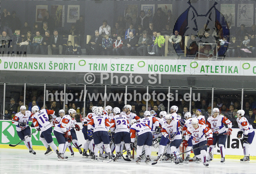 : Players of Slovenia before start of the match of EIHC Ice hockey tournament between Slovenia and Austria. Match between Slovenia and Austria was held in Ljubljana Hala Tivoli arena, Slovenia, on Saturday, 10th of November 2012.