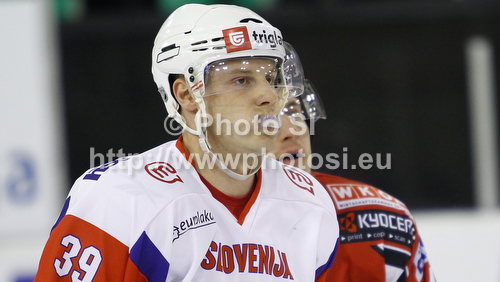 : Jan Mursak (no.39) of Slovenia during match of EIHC Ice hockey tournament between Slovenia and Austria. Match between Slovenia and Austria was held in Ljubljana Hala Tivoli arena, Slovenia, on Saturday, 10th of November 2012.